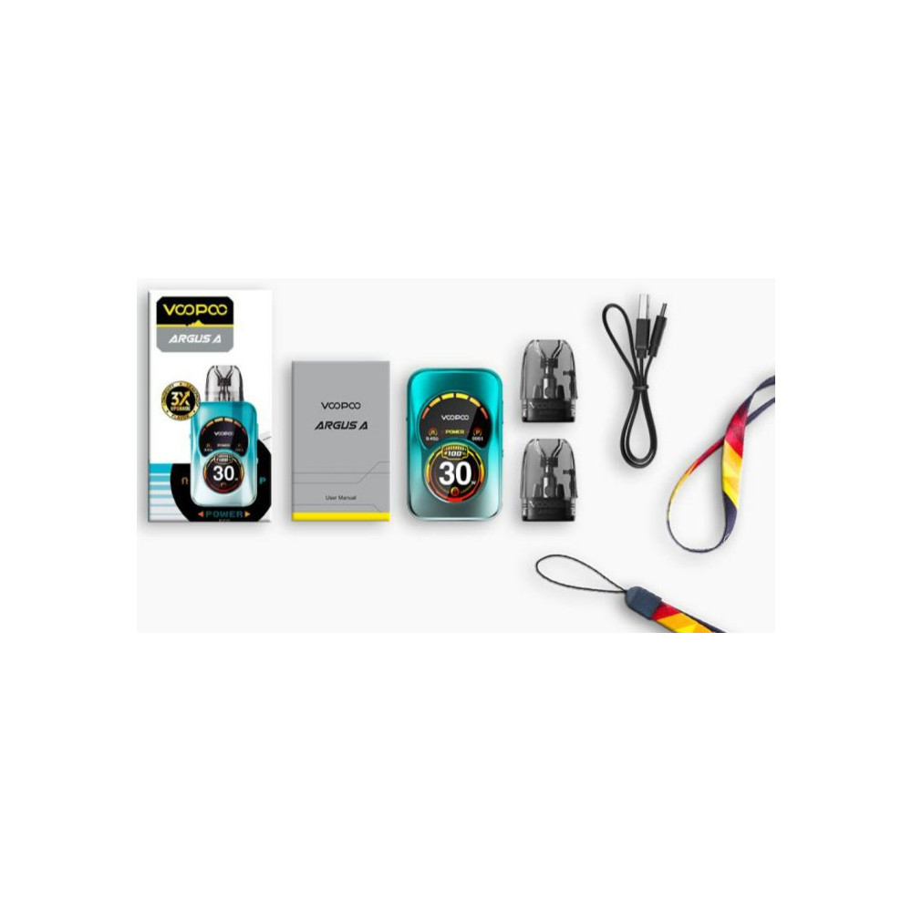 Vlajková loď" třídy ARGUS s přízviskem A je do detailu vyladěná elektronická cigareta od společnosti VOOPOO. Přední panel baterie podtrhuje výjimečnost tohoto zařízení - barevný dvou zónový displej. Během vapování se na obrazovce objevují zábavné animace společně s informacemi o nastavení. Vestavěný monočlánek disponuje kapacitou 1100 mAh s rychlo nabíjením typu USB-C 5V / 2A. Moderní čip GENE přináší nastavitelný výkon až 30 W a režimy SUPER a ECO. Samozřejmě nesmíme zapomenout na boční Airflow pro doladění kouřivosti. Tato sada obsahuje cartridge Argus s vrchním plněním o objemu 3 ml. Žhavicí hlava má omezenou životnost a je potřeba ji pravidelně vyměňovat (vždy při opotřebení).