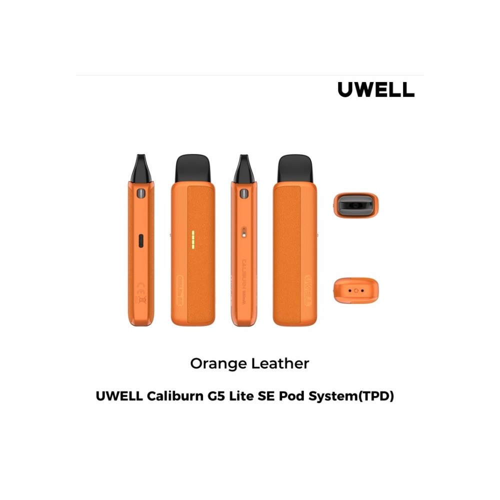 Caliburn G5 Lite SE od značky Uwell kombinuje prémiové materiály, moderní design a dlouhou výdrž v kompaktním těle vhodném pro každodenní provoz. Konstrukce z PC materiálu doplněná o kožený povrch zajišťuje příjemný úchop, odolnost a zároveň nízkou hmotnost, což z přístroje dělá praktickou volbu do kapsy i batohu. Integrovaná vysokokapacitní baterie 1600 mAh poskytuje stabilní výkon až 35 W a umožňuje několikadenní používání bez nutnosti častého dobíjení. Technologie PRO-FOCS 4.0 zajišťuje čisté podání chuti, optimalizovaný přenos výkonu a delší životnost cartridge, což je klíčové zejména z pohledu dlouhodobé spokojenosti uživatelů. Zařízení je vybaveno duálním systémem regulace airflow – jemné doladění tahu je možné jak posuvným ovladačem, tak otočením cartridge. Díky tomu lze snadno přepínat mezi utaženým MTL a volnějším RDL stylem vapování bez nutnosti výměny komponentů. Přehledný 4-Bar Gradient LED indikátor reaguje na potah a současně informuje o stavu baterie v reálném čase. Součástí balení je cartridge Caliburn GPP s odporem 0,6 ohm a bočním plněním o objemu 2 ml, navržená pro plynulý chod, minimální riziko protékání a konzistentní výkon při každodenním používání. Zařízení je plně kompatibilní s celou řadou cartridge Caliburn GPP. Žhavicí hlava má omezenou životnost a je potřeba ji pravidelně vyměňovat (vždy při opotřebení).