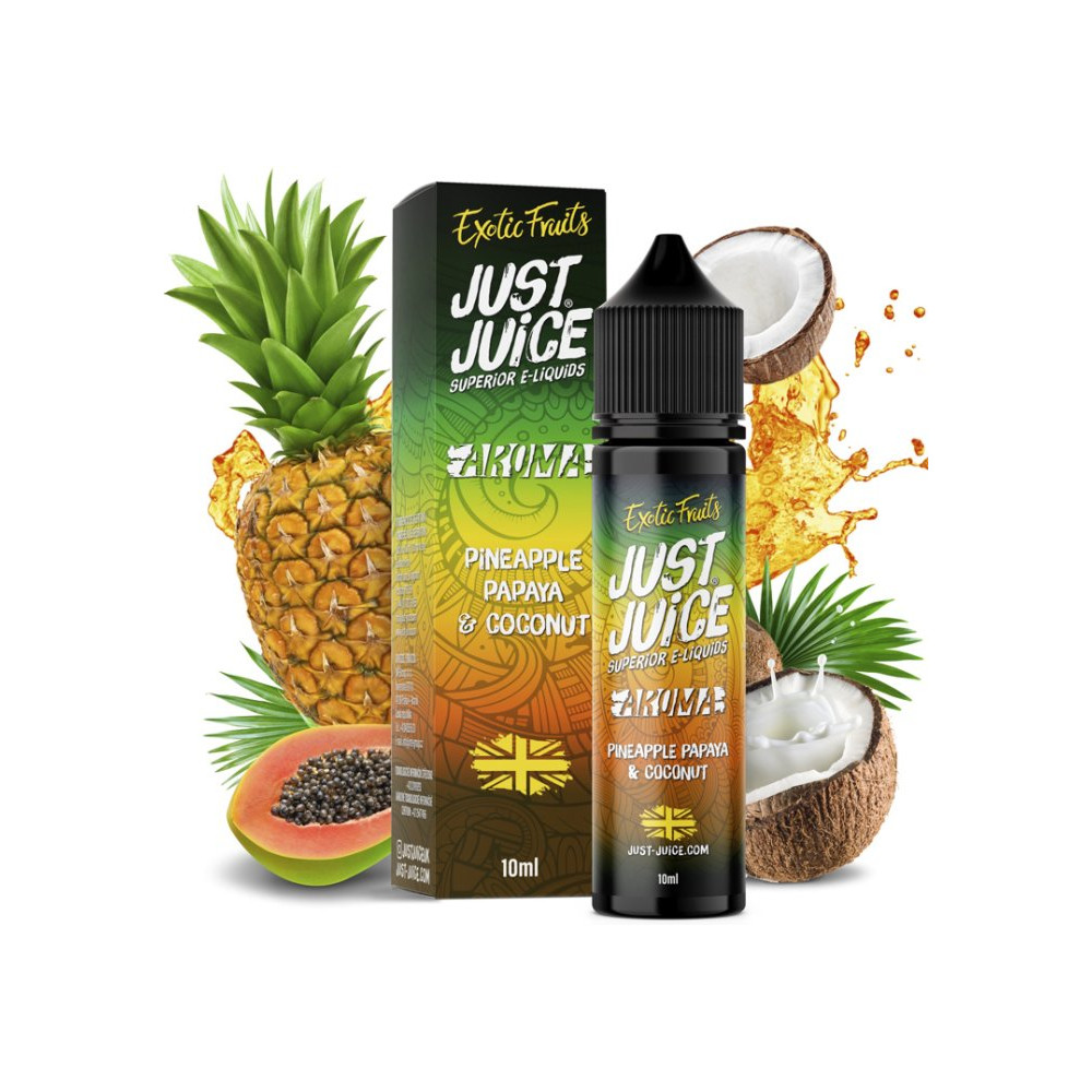 Britské příchutě Just Juice jsou velice oblíbené a vyhledávané po celé Evropě. Jsou dodávány v 60 ml lahvičkách, které obsahují 10 ml koncentrátu. Uživatel tak pouze přidá bázi do lahvičky, zatřese s ní a má hotový e-liquid. Výroba probíhá za nejpřísnějších hygienických standardů ve farmaceutické laboratoři. Jedná se o koncentrovanou příchuť, kterou je potřeba smíchat s bází obsahující propylen glykol a/nebo rostlinný glycerol (jde o příchuť Shake & Vape), není to hotový liquid. Příchuť neobsahuje nikotin. Používejte ochranné pomůcky. Výhradně pro domácí výrobu liquidů.