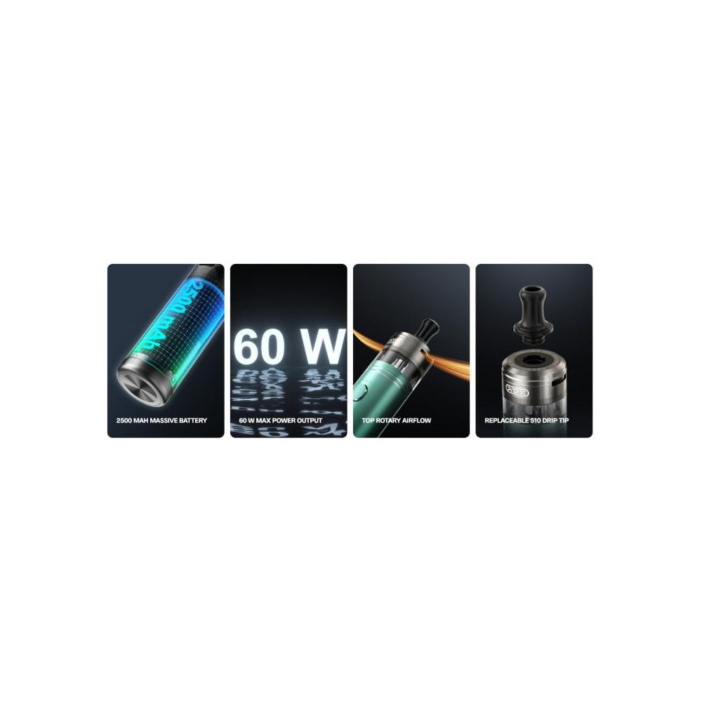 Elegantní a odolná elektronická cigareta s vestavěným monočlánkem o kapacitě 2500 mAh a výkonem až 60 W. Cartridge PnP X pojme až 5 ml liquidu. Pro DTL a MTL vaping.