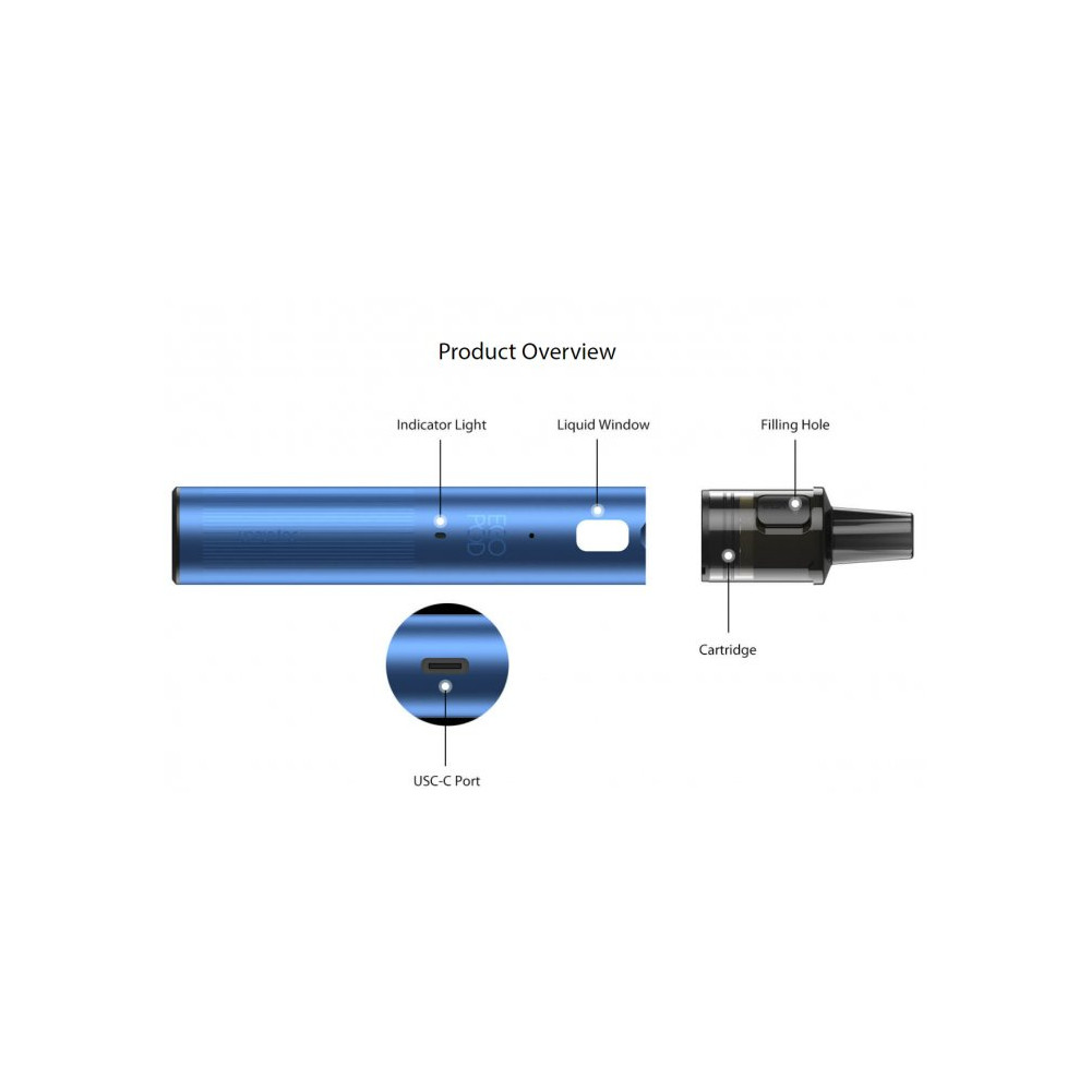 Jednoduchá elektronická cigareta s POD systémem, se zbrusu novým designem. Automatická baterie má kapacitu 1000 mAh a cartridge 2 ml. Pro vaping ve stylu MTL.
