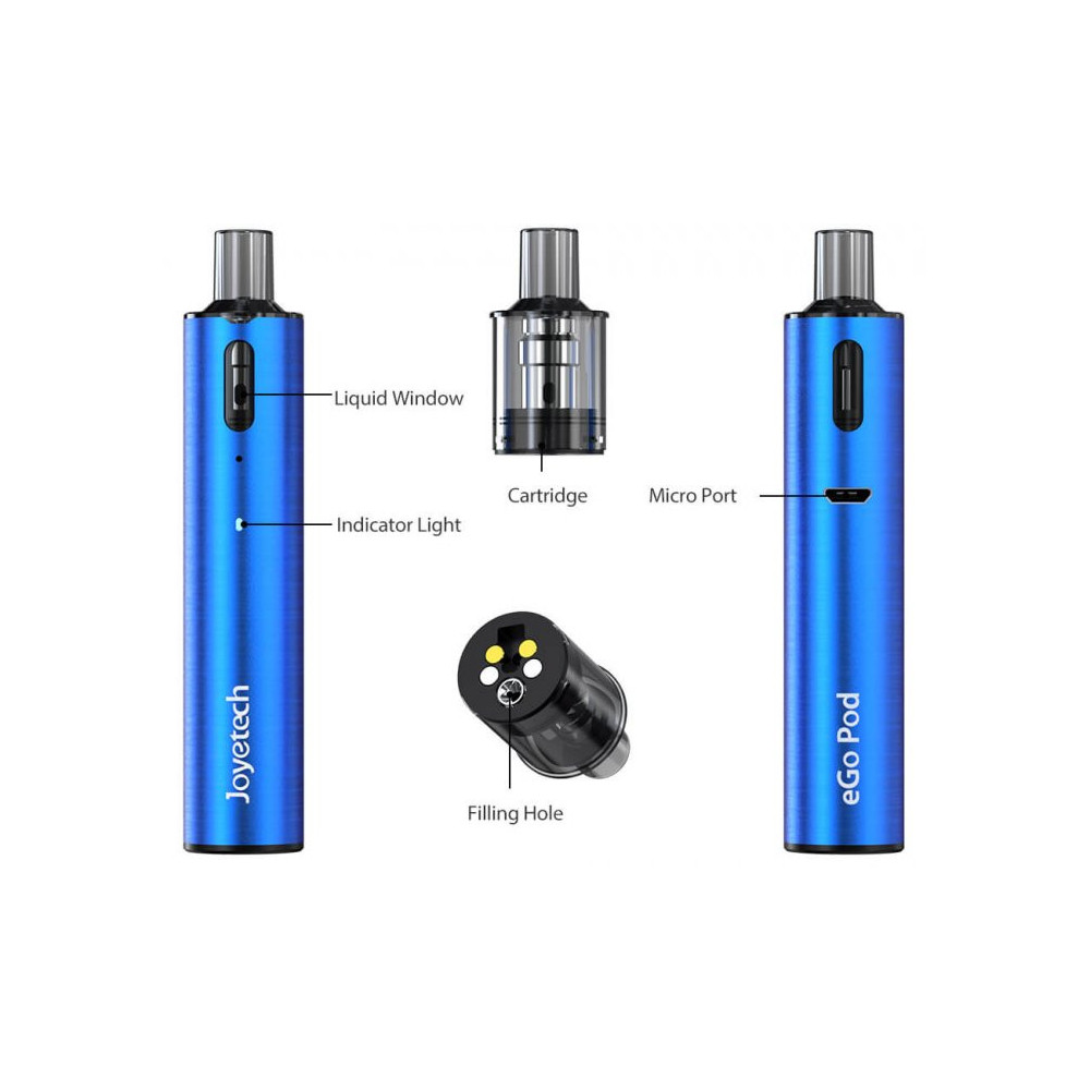Joyetech eGo Pod je jednoduchá elektronická cigareta s POD systémem. Moderní a designové tělo e-cigarety skrývá vestavěnou baterii o kapacitě 1000mAh s automatickým spínačem a konstantním napětím 3,7V. Nový čip AVATAR IC 1.0 disponuje ochranou proti zkratu, přehřátí a vybití, či 8 vteřinovou ochranou žhavení. Vyměnitelná cartridge (POD) se žhavicí hlavou o odporu 1,2 ohm pojme až 2 ml liquidu. Nabíjení umožňuje micro USB vstup. Tato inovace je vhodná pro kouření ve stylu MTL, tedy klasického šlukování pusa-plíce.