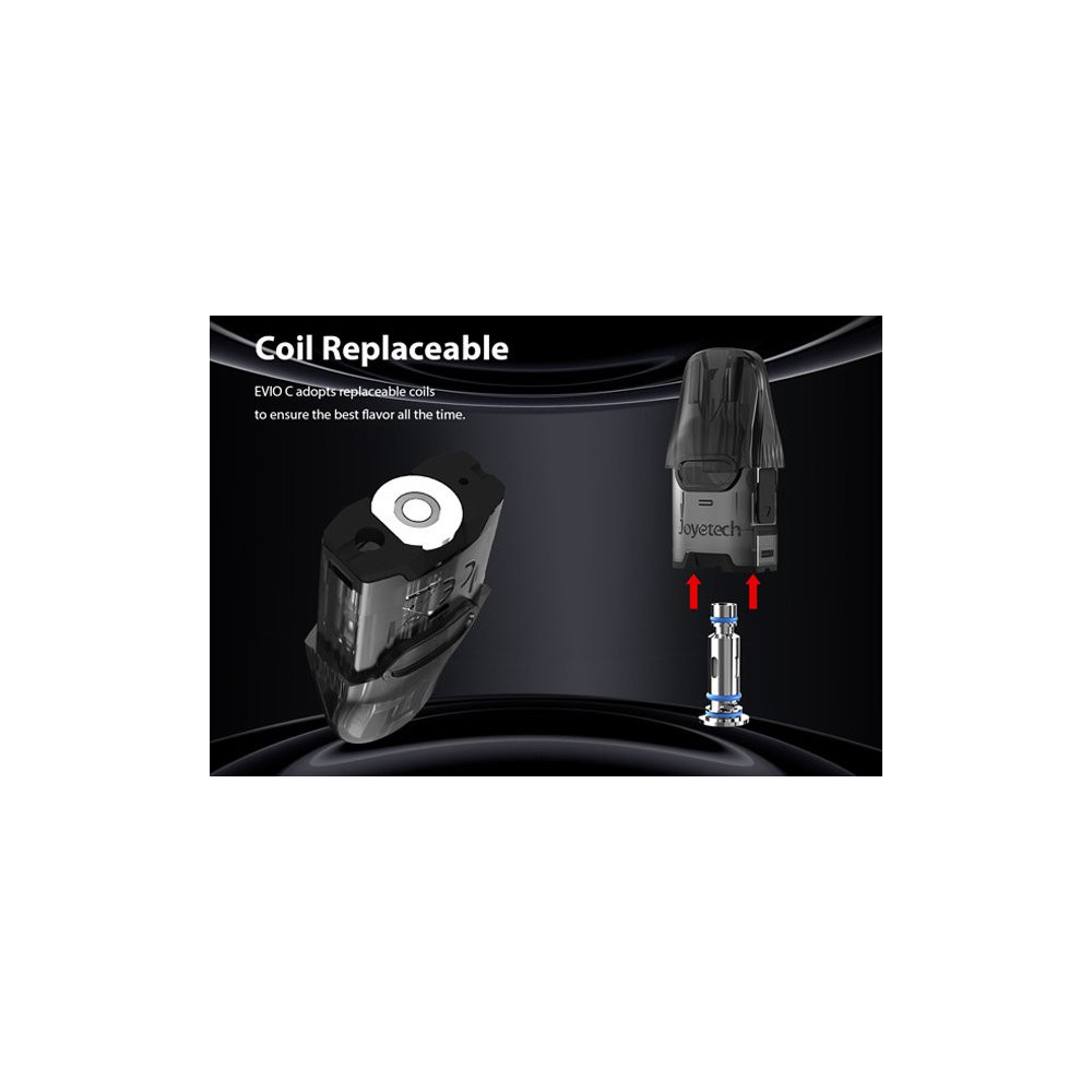 Joyetech EVIO C Pod je ultimátní elektronická cigareta s POD systémem a bezprecedentním tělem z austenitické nerezové oceli. Vestavěná baterie o kapacitě 800mAh disponuje LED indikátorem stavu nabití a USB-C portem pro rychlé nabíjení za pouhých 30min. Cartridge (POD) s pohodlným bočním plněním o objemu 2ml obsahuje vyměnitelné atomizery EN Mesh o odporu 0,8ohm (plně kompatibilní se žhavícími hlavami Uwell Caliburn G). Přívod vzduchu se nachází na boku těla baterie a dle Vašeho požadavku si můžete zvoli mezi DL a MTL stylem vapování - závisí na způsobu vložení cartridge (viz obrázek).