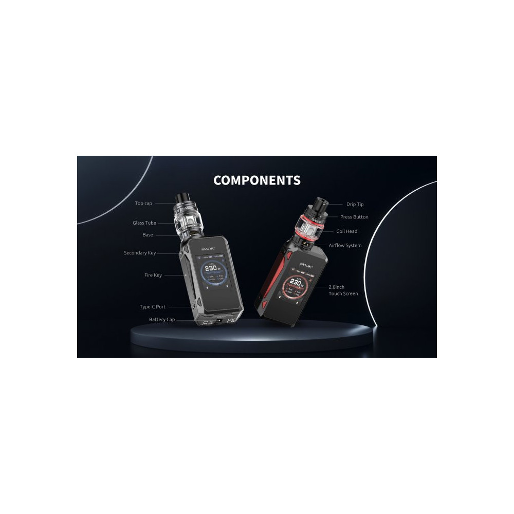 Čtvrtá řada dotykového gripu G-Priv 4 s propracovanou konstrukcí těla, která je v místě držení pokryta kůží pro pohodlný úchop. Spodní kryt umožňuje vložení dvou baterií typu 18650, které aktivují nový čip IQ-M s nejpokročilejším uživatelským rozhraním. Masivní 2,0 palcový barevný displej s vysokým rozlišením umožňuje nastavení pomocí jednoduchého dotyku. Grip nabízí regulovatelný výkon až 230W. Clearomizer TFV18 Mini je vybaven konvexní nádržkou o objemu 6,5ml, pořádným přívodem vzduchu a žhavícími hlavami typu Mesh o odporu 0,15ohm a 0,33ohm.