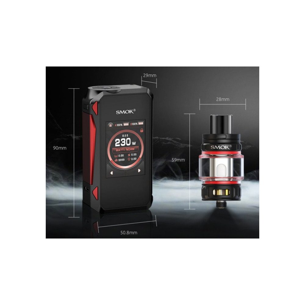 Čtvrtá řada dotykového gripu G-Priv 4 s propracovanou konstrukcí těla, která je v místě držení pokryta kůží pro pohodlný úchop. Spodní kryt umožňuje vložení dvou baterií typu 18650, které aktivují nový čip IQ-M s nejpokročilejším uživatelským rozhraním. Masivní 2,0 palcový barevný displej s vysokým rozlišením umožňuje nastavení pomocí jednoduchého dotyku. Grip nabízí regulovatelný výkon až 230W. Clearomizer TFV18 Mini je vybaven konvexní nádržkou o objemu 6,5ml, pořádným přívodem vzduchu a žhavícími hlavami typu Mesh o odporu 0,15ohm a 0,33ohm.