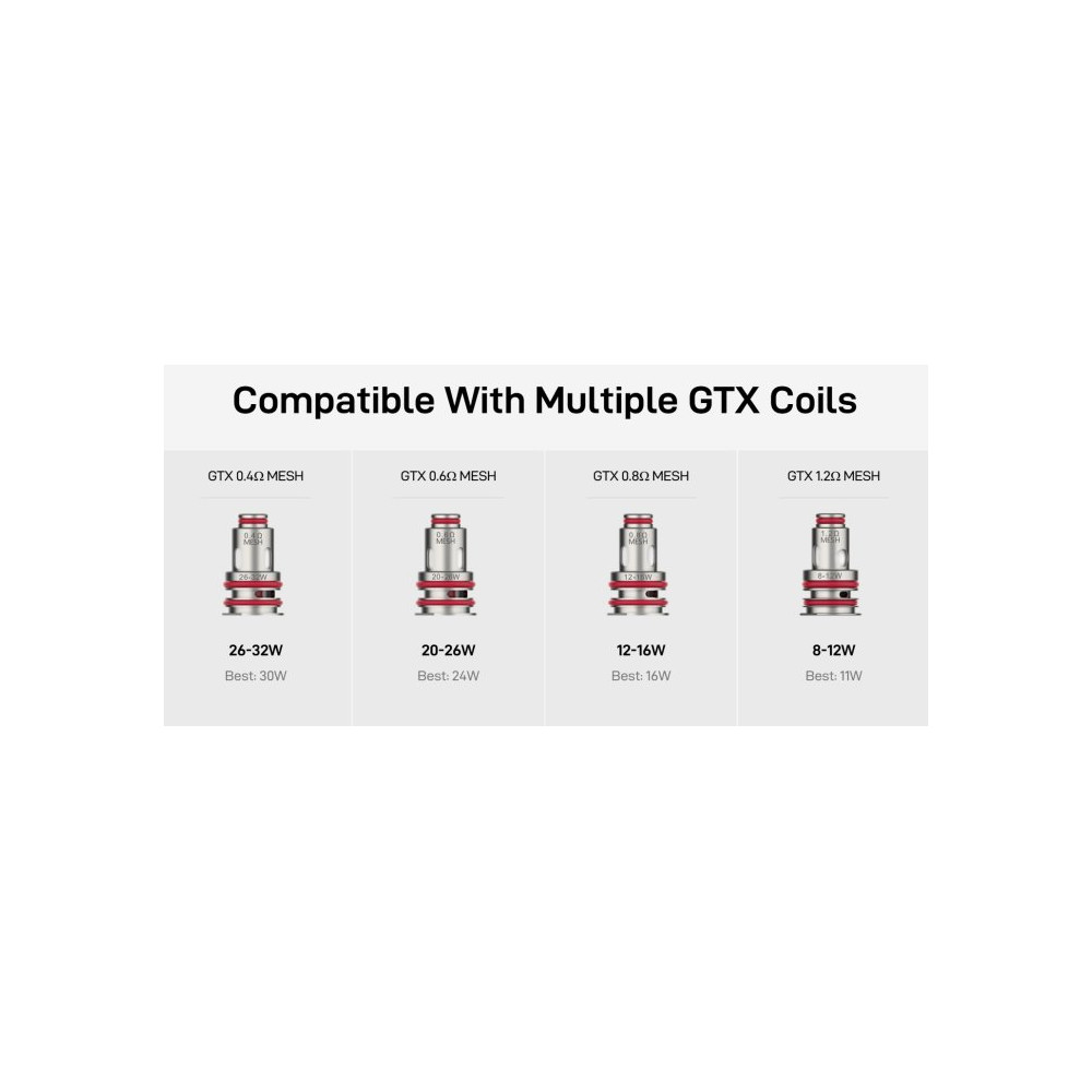 Kompaktní, elegantní a výkonný pod kit nové generace přináší větší baterii 3000 mAh, vylepšený OLED displej, čip AXON s Pulse technologií a nový Xtank T s horním plněním a ochranou proti protékání o kapacitě 3 ml. Kompatibilní s celou řadou GTX hlav pro MTL i RDL.