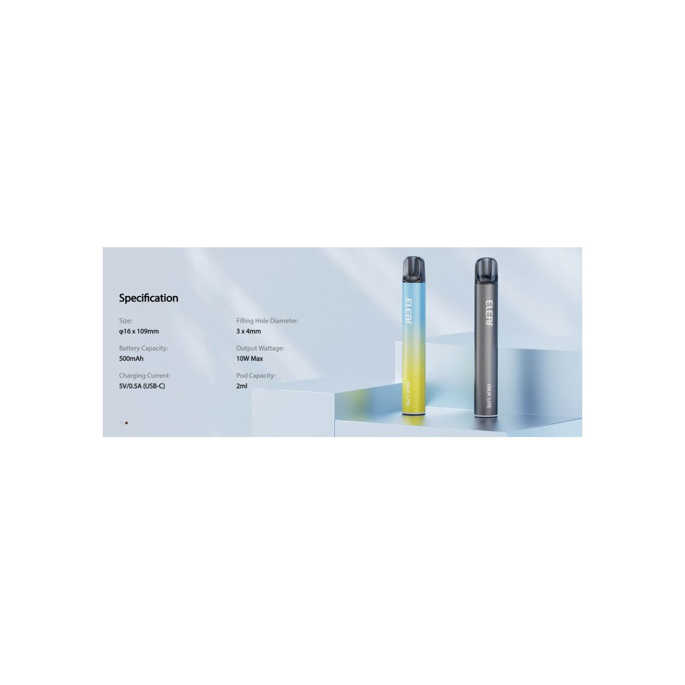 Eleaf iSILK Lite vyniká stylovým designem ve tvaru pera a nabízí jednoduché používání s 2 ml plnitelnou cartridge (0,8 ohm a 1,0 ohm). Zařízení je vybaveno vestavěnou dobíjecí baterií o kapacitě 500 mAh, která Vám poskytne dostatek energie pro celý den. O stavu baterie Vás přehledně informuje dvoubarevný indikátor, díky kterému budete mít vždy jistotu, že je zařízení připravené k použití. Pro rychlou a plynulou aktivaci postačí třikrát potáhnout během dvou sekund – žádná složitá tlačítka, jen čistý požitek z vapování. iSilk Lite je ideální volbou pro ty, kteří hledají hladký a bohatý zážitek z vapování v elegantním a praktickém provedení. Zařízení ISILK je kompatibilní s cartridgemi ELF BAR ELFA nebo TAPPO. Žhavicí hlava má omezenou životnost a je potřeba ji pravidelně vyměňovat (vždy při opotřebení).