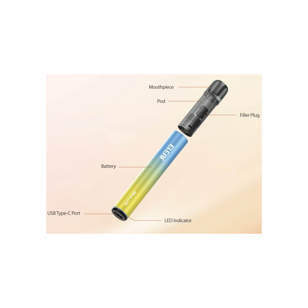 Elektronická cigareta ve tvaru pera s POD systémem. Kapacita baterie je 500 mAh, výkon až 10 W. Prázdné cartridge s vestavěnou žhavicí hlavou mají kapacitu až 2 ml a jsou opětovně plnitelné nebo lze používat i přednaplněné cartridge ELF BAR ELFA nebo LOST MARY TAPPO Pods. Pro vaping ve stylu MTL.