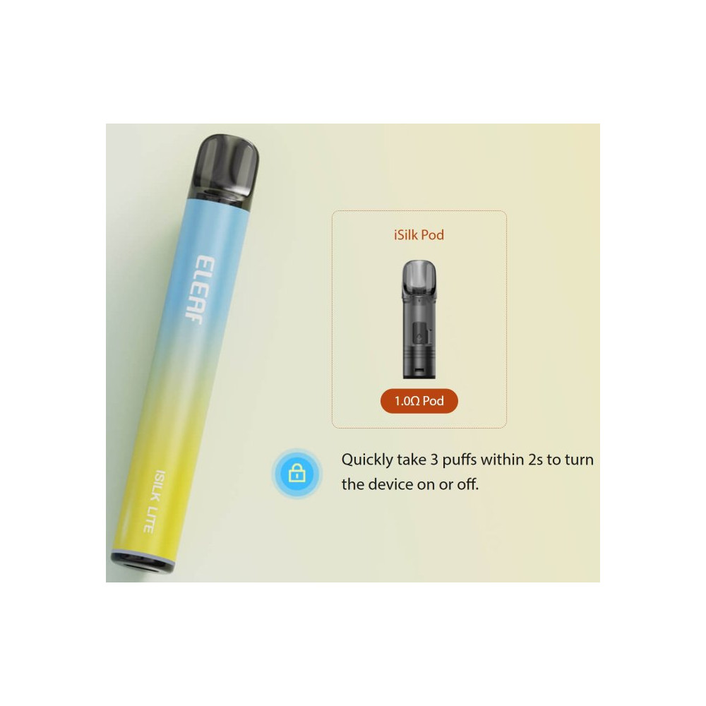 Eleaf iSILK Lite vyniká stylovým designem ve tvaru pera a nabízí jednoduché používání s 2 ml plnitelnou cartridge (0,8 ohm a 1,0 ohm). Zařízení je vybaveno vestavěnou dobíjecí baterií o kapacitě 500 mAh, která Vám poskytne dostatek energie pro celý den. O stavu baterie Vás přehledně informuje dvoubarevný indikátor, díky kterému budete mít vždy jistotu, že je zařízení připravené k použití. Pro rychlou a plynulou aktivaci postačí třikrát potáhnout během dvou sekund – žádná složitá tlačítka, jen čistý požitek z vapování. iSilk Lite je ideální volbou pro ty, kteří hledají hladký a bohatý zážitek z vapování v elegantním a praktickém provedení. Zařízení ISILK je kompatibilní s cartridgemi ELF BAR ELFA nebo TAPPO. Žhavicí hlava má omezenou životnost a je potřeba ji pravidelně vyměňovat (vždy při opotřebení).