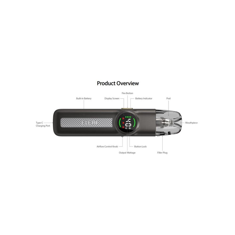 Eleaf iVeni Vás osloví kvalitním kovovým zpracováním a skvělým pocitem v ruce. Disponuje baterie o kapacitě 1100 mAh s rychlým 2 A nabíjením přes USB-C, takže spojuje styl a efektivitu. Barevný digitální displej jasně zobrazuje výkon, odpor a stav baterie. Díky ergonomickému tlačítku a plnění z boku se snadno používá, a nastavitelný průtok vzduchu umožňuje přizpůsobit si zážitek z vapování. S maximálním výkonem 40 W iVeni nabízí silný a uspokojivý vapingový zážitek. Žhavicí hlava má omezenou životnost a je potřeba ji pravidelně vyměňovat (vždy při opotřebení).