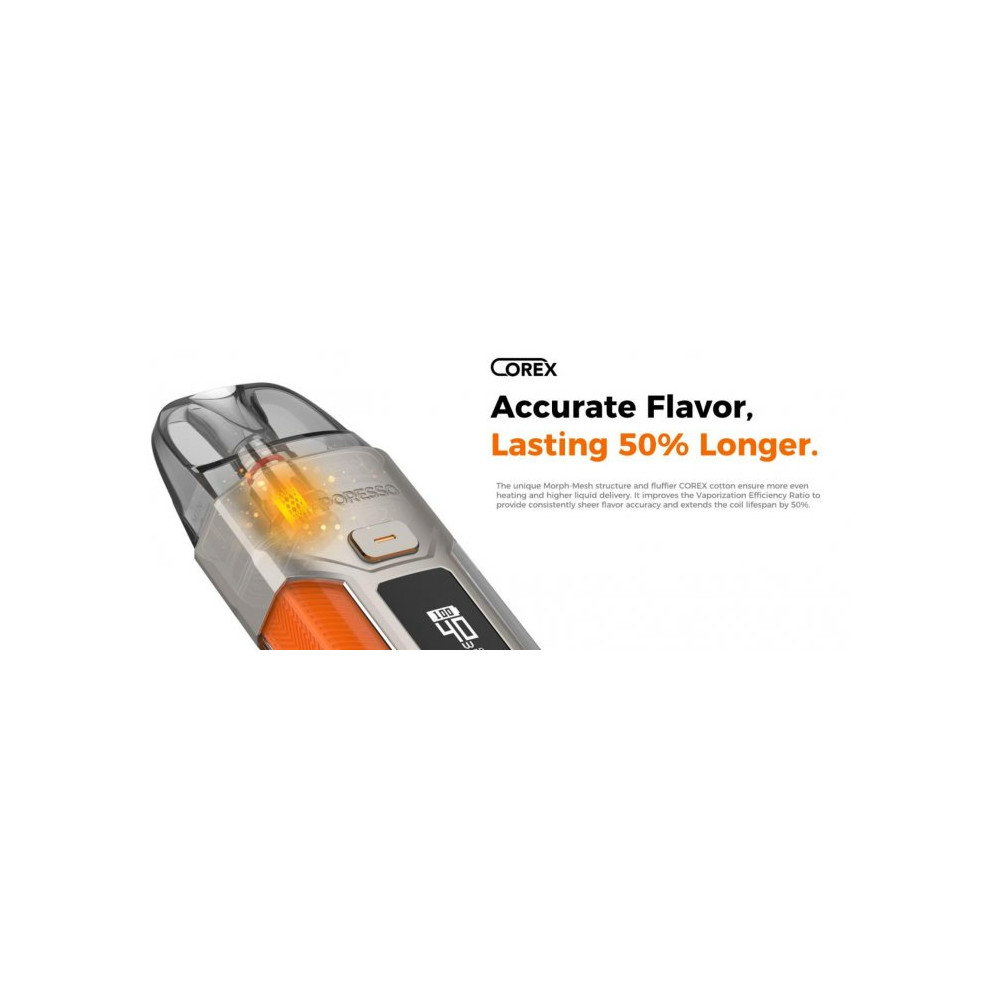 Vaporesso Luxe X Pro je elektronická cigareta s futuristickým designem a nastavitelným výkonem až 40 W. Ergonomické tělo z kvalitní zinkové slitiny disponuje vestavěnou baterií o kapacitě 1500 mAh s USB-C portem pro rychlé nabíjení. Na přední straně je umístěn OLED displej, který umožňuje nastavení hodnot a zobrazuje všechny potřebné informace. Tvorbu páry zajišťuje nejen spínací tlačítko, ale i systém automatického žhavení - stačí pouze potáhnout z náustku. Díky inovativní regulaci přívodu vzduchu si můžete nastavit mezi styl vapování MTL nebo DL. Cartridge o objemu 5 ml disponují vestavěnou žhavicí hlavou s technologií Morph-Mesh = čistá chuť liquidu. Žhavicí hlava má omezenou životnost a je potřeba ji pravidelně vyměňovat (vždy při opotřebení).
