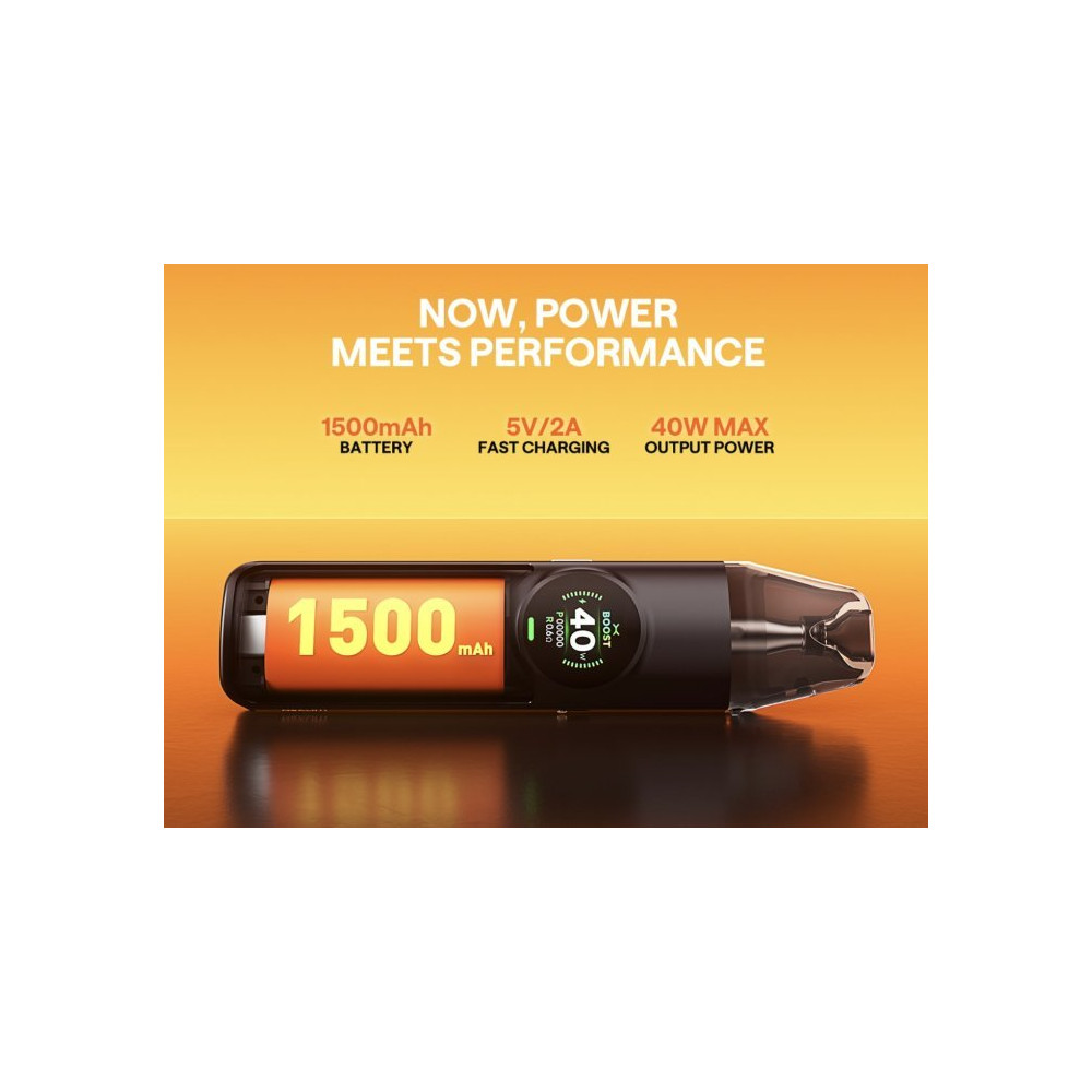 Elektronická cigareta s POD systémem. Kapacita baterie je 1500 mAh, výkon až 40 W. Cartridge s vestavěnou žhavicí hlavou mají kapacitu až 4 ml. Pro vaping ve stylu MTL - RDL. Nejsou vhodné náplně s nižším obsahem VG (např. Dekang Classic).