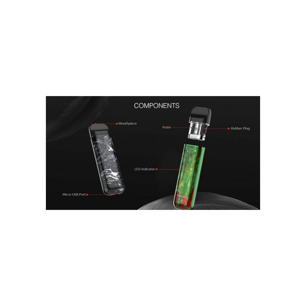 Druhá verze velmi oblíbené elektronické cigarety. Vestavěný monočlánek s kapacitou 800 mAh je ukryt v designovém těle. Nemusíte mačkat žádné tlačítko, baterie je vybavena automatickým spínačem. Nechybí ani LED indikátor stavu nabití. Maximální výkon je 25W. Inovativní cartridge (POD) s objemem 2,0 ml je přizpůsobena pro pohodlné vapování a nabízí nové modely vestavěných žhavících hlav - NOVO 2 Mesh s odporem 1,0 ohm a NOVO 2 DC MTL s odporem 1,4 ohm. Společně s bočními drážkami pro přívod vzduchu ke spirálce přináší NOVO 2 hodně páry a chuti. Nabíjení zajišťuje micro USB vstup. Nechybí ani osmivteřinová kontrola potahů, ochrana proti zkratu, přehřátí a vybití.