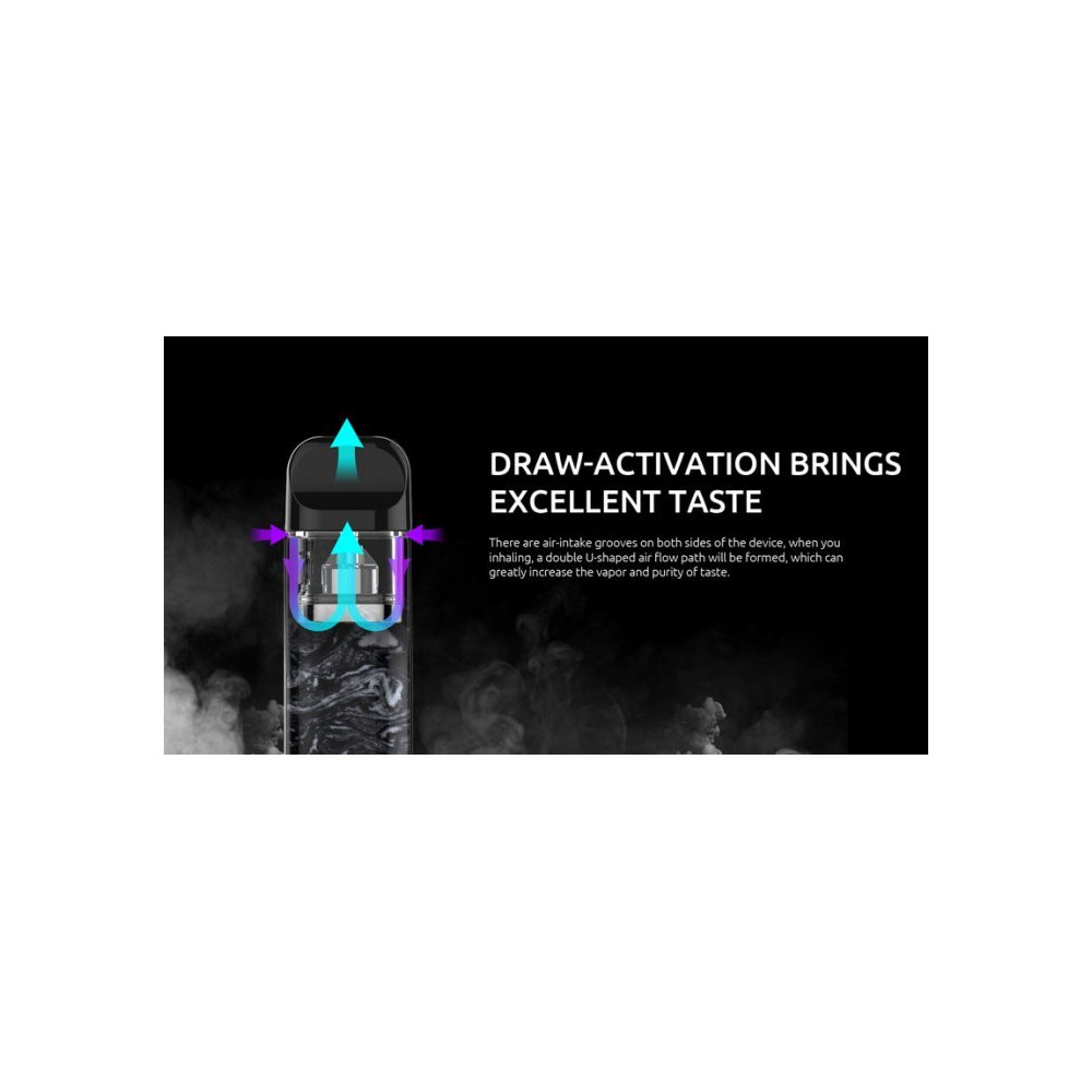 Druhá verze velmi oblíbené elektronické cigarety. Vestavěný monočlánek s kapacitou 800 mAh je ukryt v designovém těle. Nemusíte mačkat žádné tlačítko, baterie je vybavena automatickým spínačem. Nechybí ani LED indikátor stavu nabití. Maximální výkon je 25W. Inovativní cartridge (POD) s objemem 2,0 ml je přizpůsobena pro pohodlné vapování a nabízí nové modely vestavěných žhavících hlav - NOVO 2 Mesh s odporem 1,0 ohm a NOVO 2 DC MTL s odporem 1,4 ohm. Společně s bočními drážkami pro přívod vzduchu ke spirálce přináší NOVO 2 hodně páry a chuti. Nabíjení zajišťuje micro USB vstup. Nechybí ani osmivteřinová kontrola potahů, ochrana proti zkratu, přehřátí a vybití.
