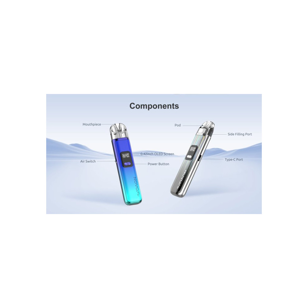 Smoktech NOVO Pro je vysoce výkonná řada elektronických cigaret s poutavým vzhledem a profesionálními funkcemi. Baterie s integrovaným monočlánkem o kapacitě 1300 mAh nabízí dva aktivační režimy pro flexibilnější způsob vapování. Přehledný 0,42 palcový OLED displej zobrazuje veškeré potřebné informace o nastavení včetně výstupního výkonu, který dosahuje až 30 W. Cartridge Novo Clear s vrchním plněním o objemu 3 ml se představují ve verzi Mesh o odporu 0,6 ohm a 0,8 ohm. Tyto cartridge jsou plně kompatibilní s cartridgemi Novo 2. Postranní airflow je regulován pomocí speciální páčky, která vám umožní si vzduch nastavit přesně podle Vaší chuti. Žhavicí hlava má omezenou životnost a je potřeba ji pravidelně vyměňovat (vždy při opotřebení).