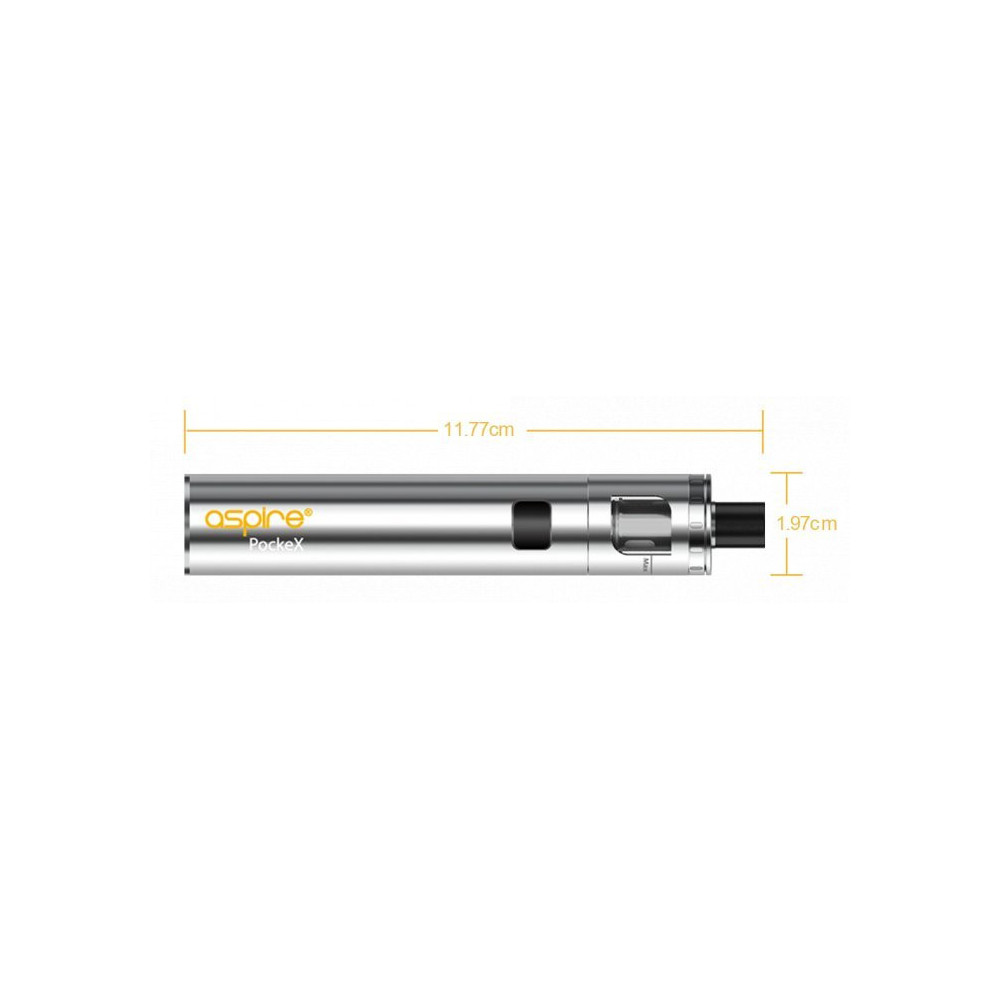PockeX AIO je jednoduchá a výkonná ALL in ONE elektronická cigareta od společnosti aSpire. Svými vlastnostmi uspokojí jak úplné začátečníky, tak i zkušené uživatele, kteří si chtějí prožít vaping bez jakéhokoli nastavování (výkon je nastavován automaticky v závislosti na zvoleném odporu atomizeru). Vrchní plnění pojme až 2ml liquidu s možností vyjmutí clearomizeru pro snadnou údržbu. Žhavicí hlava se skrývá pod širokým náustkem, který přináší ještě větší množství páry. Nové hlavy PockeX používají technologii U-Tech, tj. dvě vertikální spirálky vedle sebe, kde vzduch prochází postupně oběma spirálkami = velké množství páry a autentická chuť liquidu. Vestavěná baterie disponuje kapacitou 1500mAh. Nabíjení umožňuje micro USB vstup (e-cigaretu lze používat i při nabíjení).
