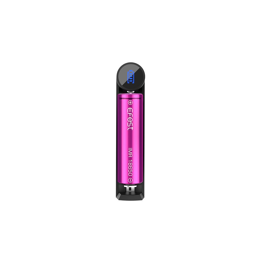 eFest K1 je kompaktní a designová nabíječka menších rozměrů, kterou lze propojit přes micro USB kabel k počítači nebo za pomocí adaptéru do klasické zásuvky. Na přední straně můžete sledovat stav nabití Vašeho monočlánku díky jednoduchému displeji. Disponuje ochranou proti obrácené polaritě, zkratu, přebití a také funkcí oživení podbitých baterií.