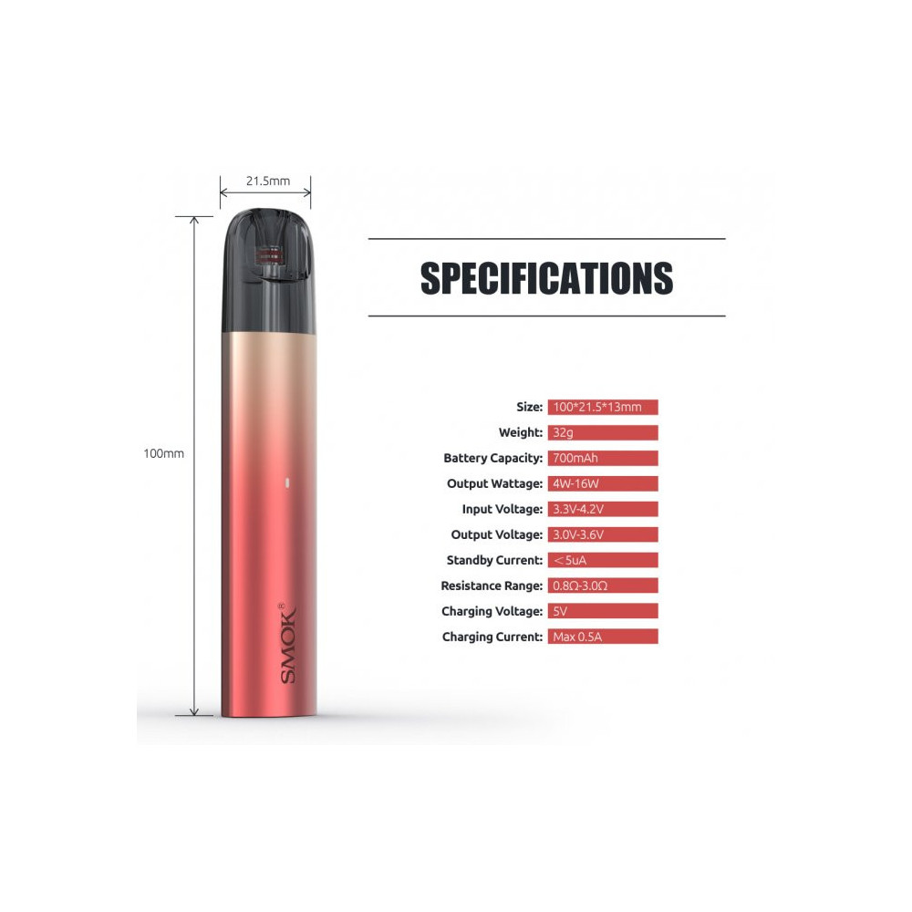 Smoktech SOLUS je ideální elektronická cigareta s POD systémem ve stylu "Pocket" (kapesní velikost). Vyměnitelná cartridge (POD) z PCTG materiálu je vybavena žhavící hlavou Meshed o odporu 0,9ohm a pojme až 3ml liquidu. Díky magnetickému propojení s baterií lze cartridge jednoduše vyjmout a doplnit oblíbeným liquidem. Kvalitní hliníková konstrukce těla baterie disponuje vestavěným monočlánkem o kapacitě 700mAh, LED indikátorem stavu nabití a bočním přívodem vzduchu. Tato inovace je vhodná pro kouření ve stylu MTL, tedy klasického šlukování pusa-plíce
