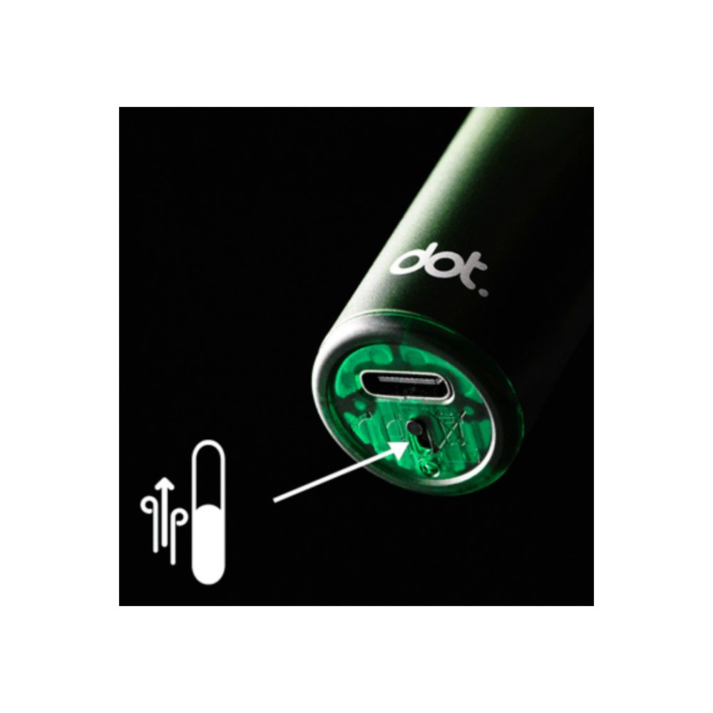 Elektronická cigareta DotMod Switch R je ideální vapovací zařízení ve stylu pera pro začátečníky, kteří hledají jednoduchost bez kompromisů v kvalitě vapingu. Tělo baterie je vyrobeno z kvalitního hliníku a disponuje vestavěným monočlánkem o kapacitě 1000mAh s rychlonabíjením typu USB-C a automatickým výkonem až 25W. Vyměnitelná cartridge (POD) je vybavena žhavící hlavou o odporu 0,8ohm s objemem nádržky 3ml. Díky magnetickému propojení s baterií lze cartridge jednoduše vyjmout a doplnit oblíbeným liquidem. Regulace přívodu vzduchu pro nastavení optimální kouřivosti se nachází ve spodní části těla baterie. Žhavicí hlava má omezenou životnost a je potřeba ji pravidelně vyměňovat (vždy při opotřebení).