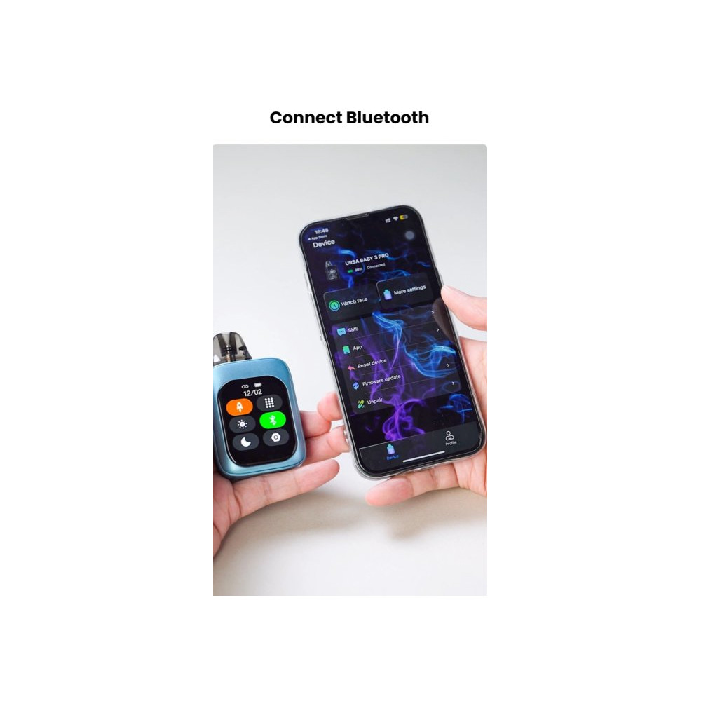 Kompaktní a inteligentní pod systém s baterií 1300 mAh, nastavitelným výkonem až 35 W, plně barevným dotykovým displejem a podporou Bluetooth 5.0. Zařízení je kompatibilní s celou řadou cartridgí Ursa a je navrženo pro vyvážený MTL – RDL projev v moderním kapesním provedení.