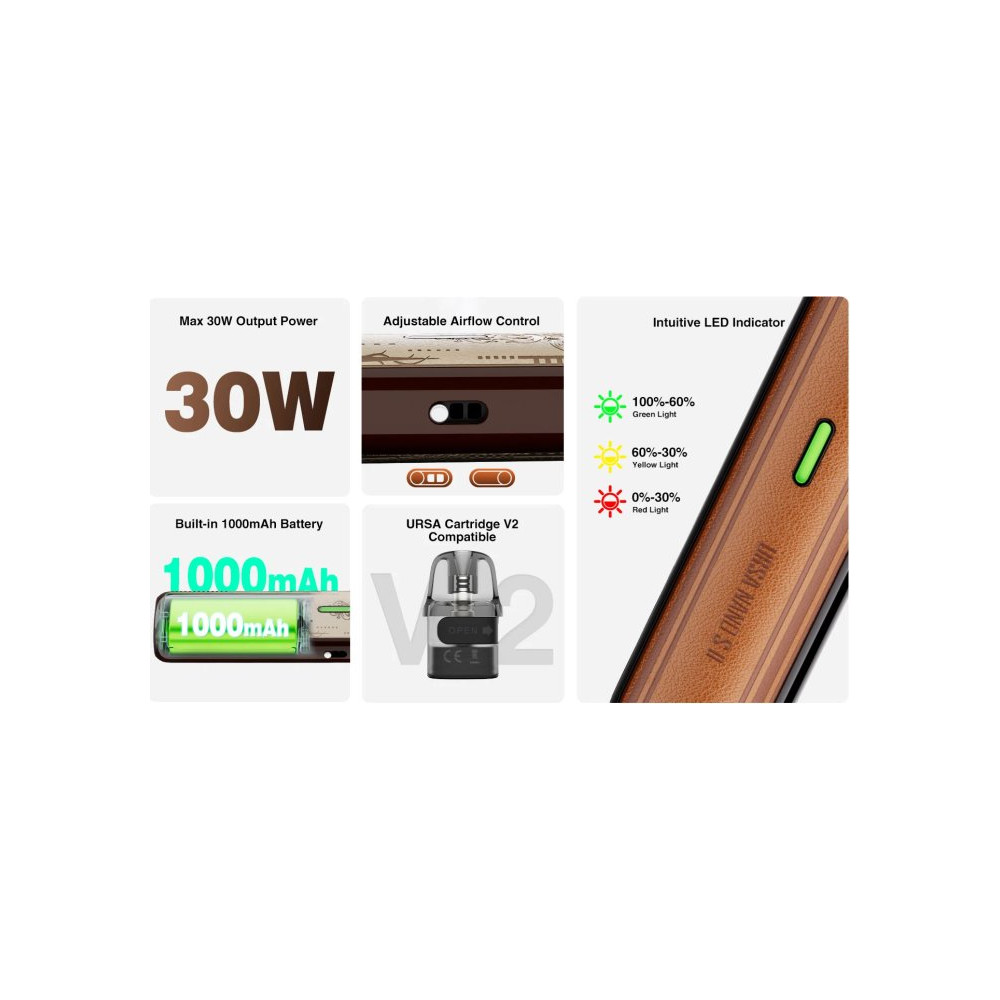 Druhá řada oblíbené elektronické cigarety Ursa Nano S II od společnosti Lost Vape. Ergonomické tělo baterie s decentním pogumováním disponuje integrovaným monočlánkem o kapacitě 1000 mAh s automatickým spínačem, výstupním výkonem až 25 W a USB-C portem pro rychlé nabíjení. Cartridge o objemu 2,5 ml jsou plně kompatibilní s předchozími modely a v základním balení naleznete cartridge o odporu 0,8 ohm. Žhavicí hlava má omezenou životnost a je potřeba ji pravidelně vyměňovat (vždy při opotřebení).