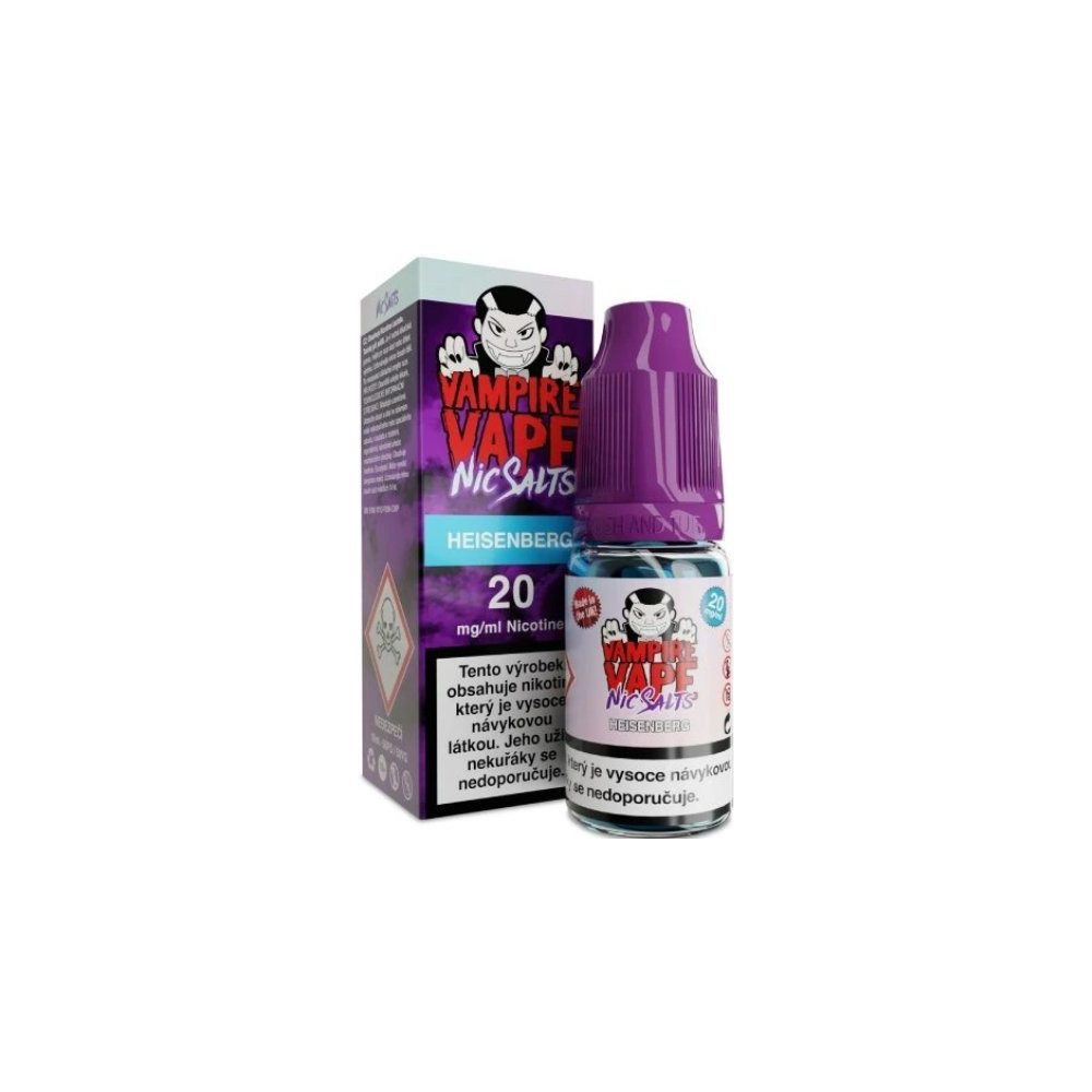 Vampire Vape je celosvětově proslavený výrobce skvělých příchutí pro vaping. Právě nyní si Vaše oblíbené příchutě můžete užít ve formě e-liquidů s oblíbenou variantou nikotinu - NicSaltem. To znamená, že na Vás při vapování nečeká nepříjemný hit, ale potah je jemný a bez škrábání. Liquidy s nikotinovou solí jsou nejvíce vhodné pro zařízení s vyšším odporem (1 ohm a více), POD systémy a styl potahování ústa - plíce, jako u klasického kouření (MTL). Tyto liquidy jsou velmi vhodné pro kuřáky, kteří přecházejí z klasických cigaret na elektronické, kdy je nutné, aby nový e-kuřák dostal do těla dostatečné množství nikotinu, bez jakéhokoli dráždivého pocitu (škrábání, kašlání). Poměr VG / PG : 50 / 50.