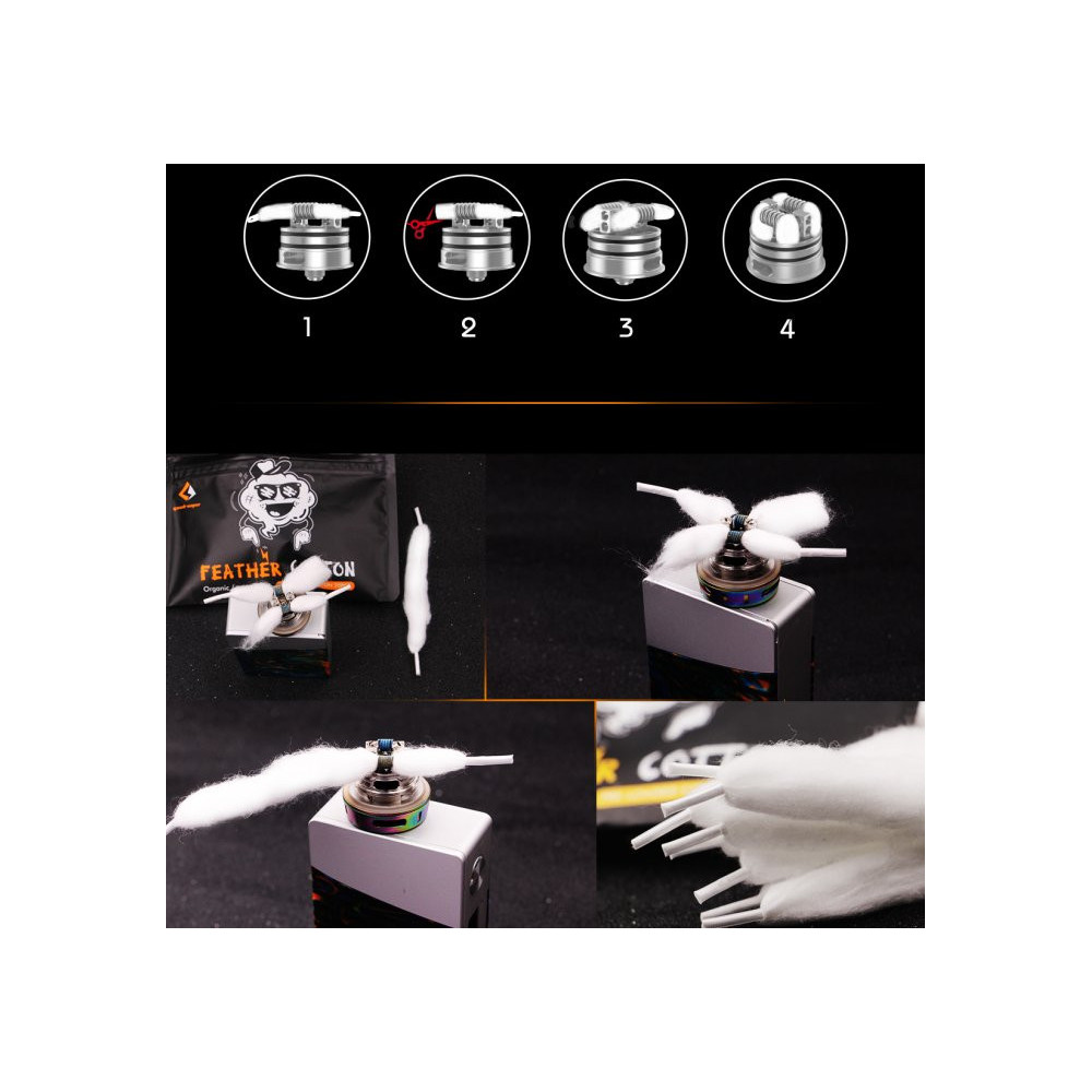 Předpřipravená bavlna, speciálně zakončená pro snadnou instalaci do spirálky. Vata má tvar podobný tkaničkám, takže se snadno provléká spirálkami.
