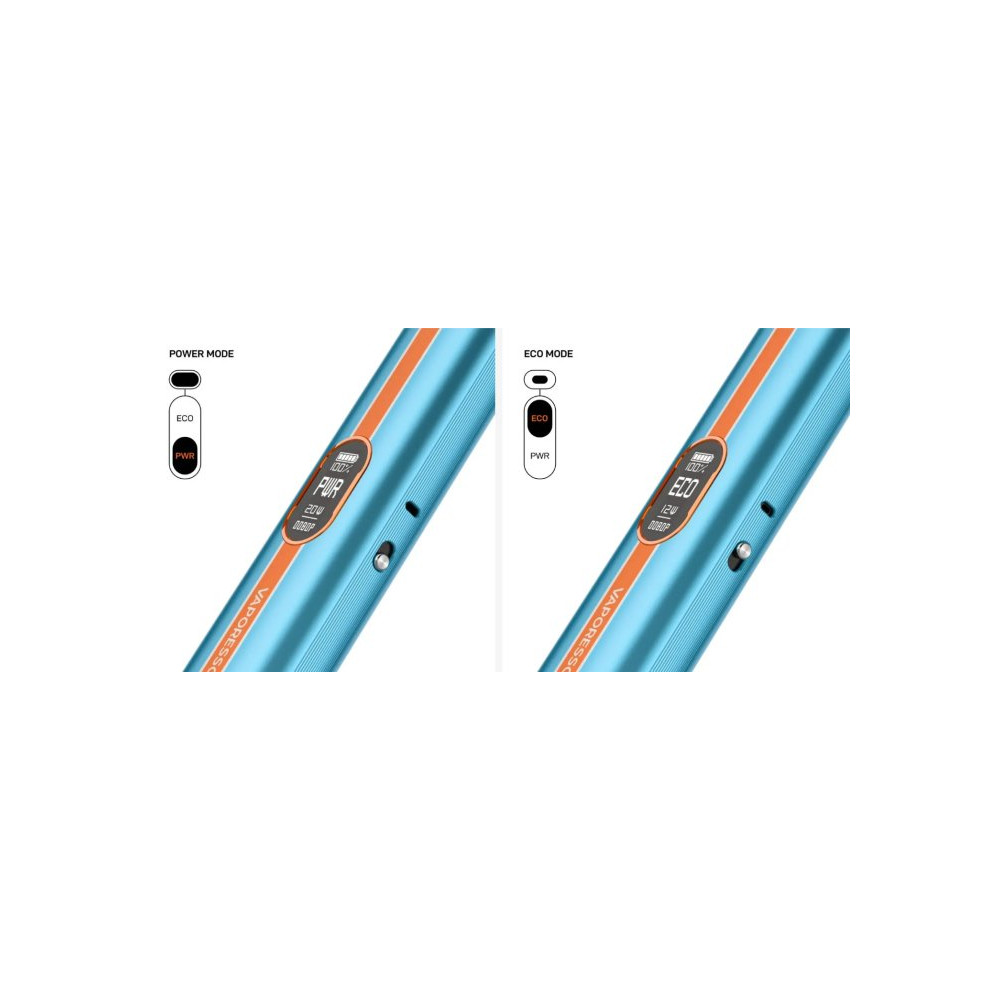 Vaporesso Vibe Pod Kit. Novinka zaujme nejen moderním vzhledem, ale především inovativní technologií Dual Mesh Coil, která přináší plnější chuť liquidu a delší životnost cartridge. Tělo baterie je vyrobeno z lehkého a odolného materiálu, který v sobě ukrývá monočlánek o kapacitě 1100 mAh s rychlým USB-C nabíjením (5 V / 2 A) a výkonným čipem AXON. Ten umožňuje přepínání mezi režimy ECO (úsporný výkon) a PWR (plný výkon), přičemž zařízení zároveň umožňuje regulaci airflow a přizpůsobení potahu od utaženého po volný. Na přední straně baterie se nachází praktické spínací tlačítko a barevný 0,54 palcový TFT displej, který informuje o stavu baterie i aktuálním režimu. Vyměnitelná cartridge o objemu 4,5 ml je navržena pro maximální výdrž. Žhavicí hlava má omezenou životnost a je potřeba ji pravidelně vyměňovat (vždy při opotřebení).