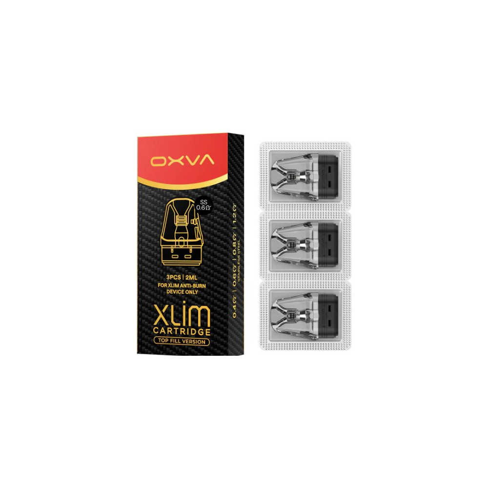 Cartridge Xlim Top Fill SS (Stainless Steel) s vrchním plněním, které pojmou až 2 ml liquidu. Určené primárně pro OXVA XLIM PRO 2 DNA, ale jsou plně kompatibilní se všemi zařízeními OXVA XLIM (Xlim GO, Xlim Classic Edition, Xlim Pro, Xlim Pro 2, Xlim SQ Pro, Xlim SQ Pro 2).