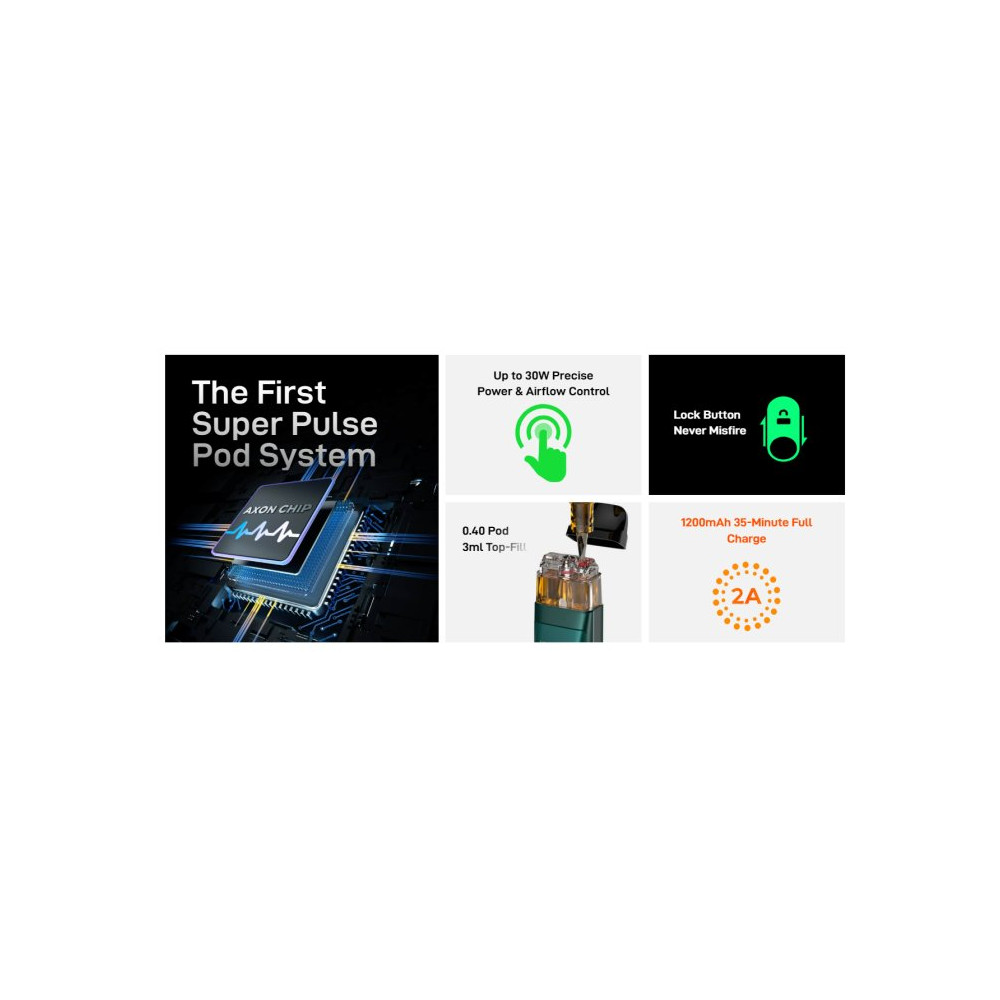 XROS PRO je nejpropracovanější a nejvýkonnější elektronická cigareta řady XROS od Vaporessa. Důmyslně zpracované tělo baterie disponuje monočlánkem o kapacitě 1200 mAh, moderním displejem a především čipem AXON, který nabízí režimy Super Pulse (stálý výkon bez ohledu na stavu nabití baterie), ECO, Normal a Power s výkonem až 30 W. XROS PRO je osazena cartridge s vrchním plněním, objemem nádržky 3 ml a Mesh spirálkou o odporu 0,4 ohm. Tato cartridge je vybavena technologií COREX Heating Tech - příjemný vaping v kombinaci husté páry a vyladěné chuti liquidu. Cartridge je plně kompatibilní s předešlými modely. Žhavicí hlava má omezenou životnost a je potřeba ji pravidelně vyměňovat (vždy při opotřebení).